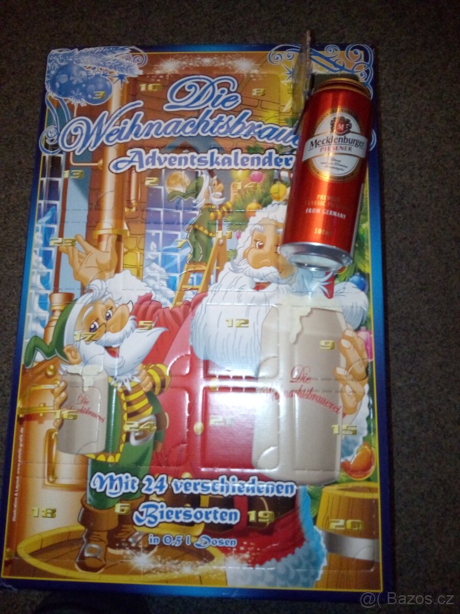 Prod. adventní kalendář s prázdnými plechovkami od piva(Německo, Dánsko) Nýřansko
