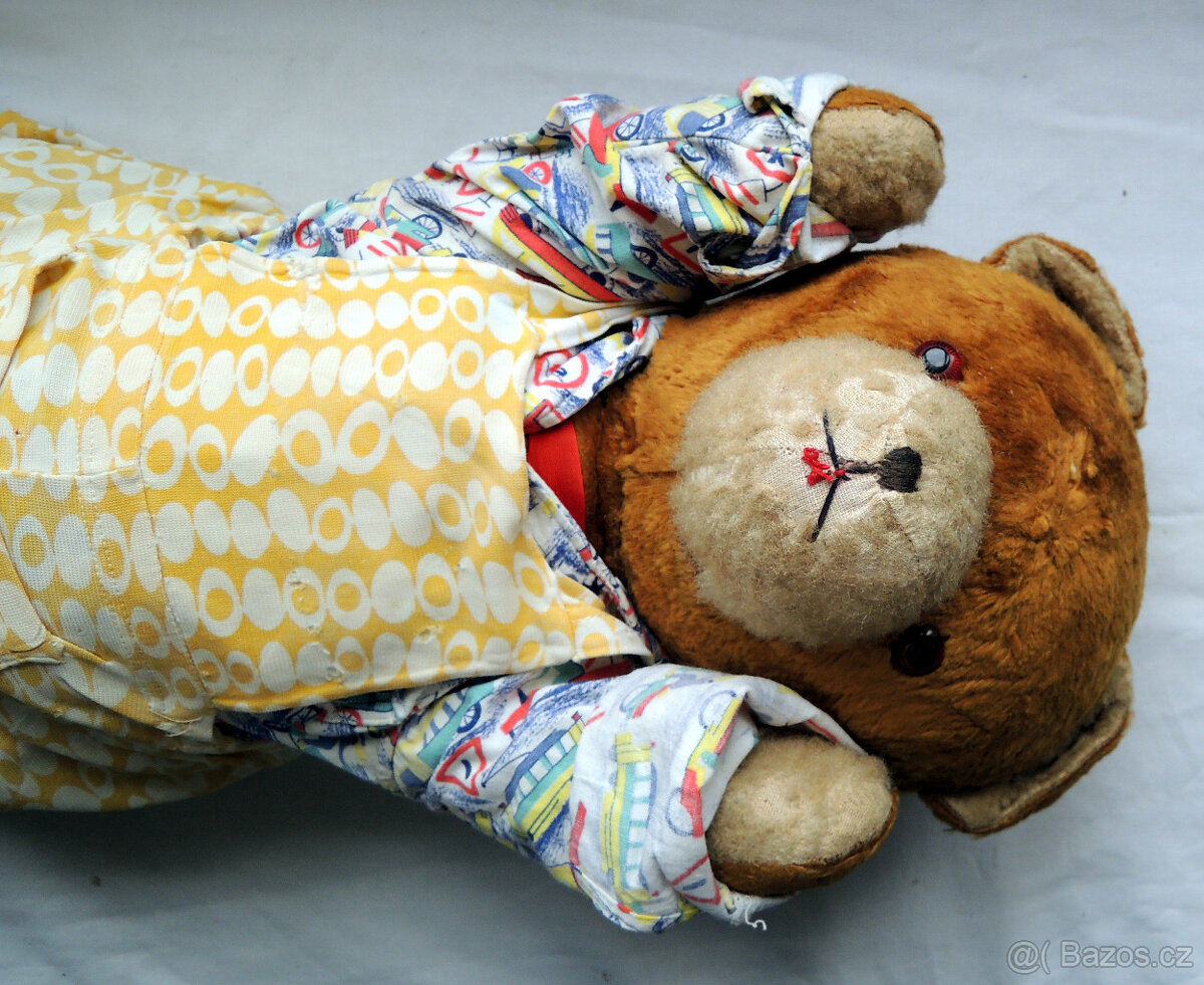 Prodám dětského medvěda, plyš, 50. léta, výška 62cm. Praha, Radlická u Smíchovského nádraží, osobně, dohodou, mejl: adam99@volny.cz, nebo tel. 732 / 32 68 08.