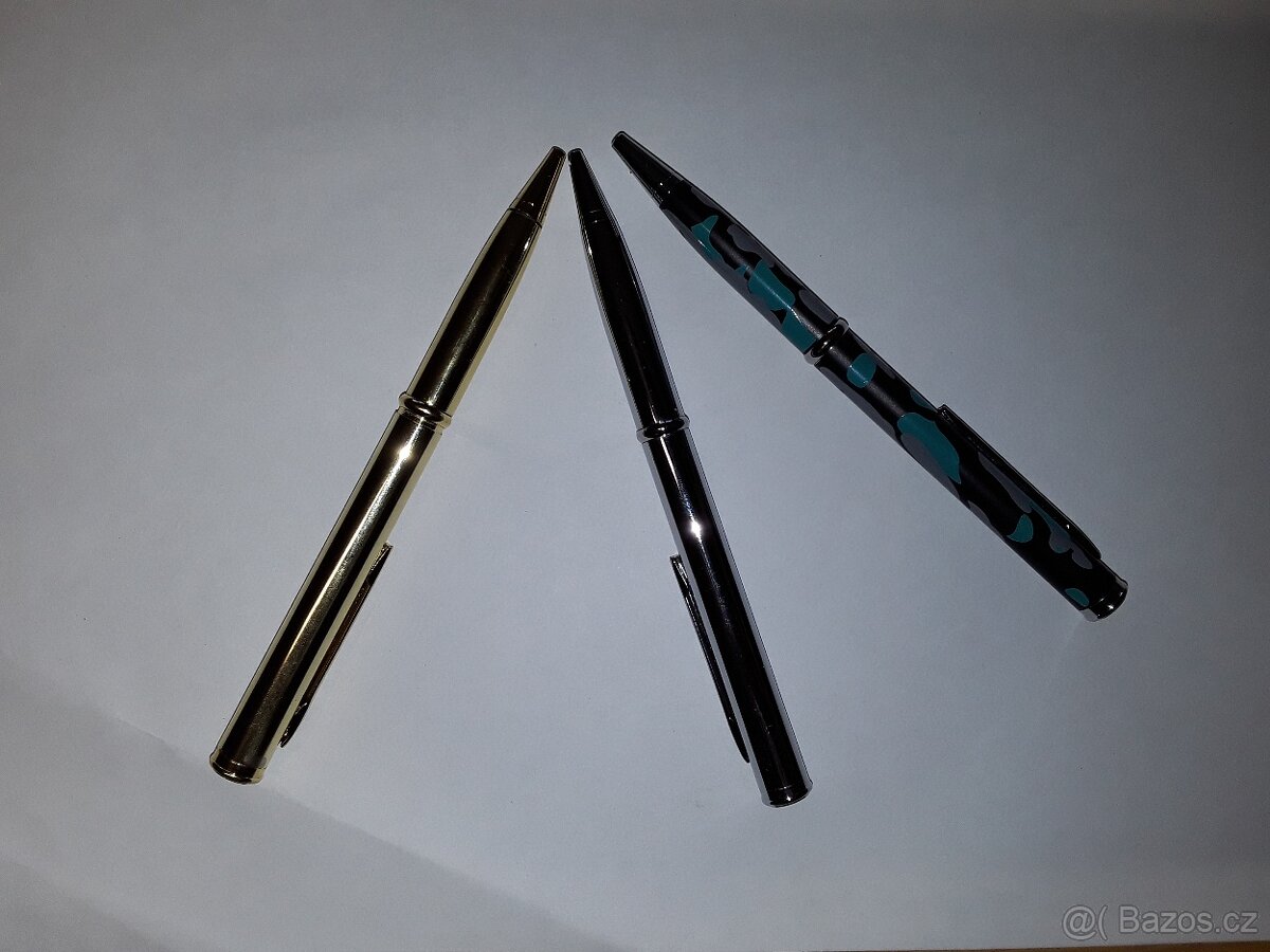 Poštovné v ceně. Propiska s nožem v sobě skloubí dvě užitečné věci: propisku na psaní a nůž na řezání. Na první pohled vypadá jako obyčejná propiska s hezkou barvou, avšak když ji uchopíte levou rukou pod prstencem a pravou nad ním a zatáhnete do pravé strany, vykoukne na Vás v případě potřeby krátká čepel. Je nutné dodat, že ostří je od výrobce zbroušeno jen velmi lehce, takže do maximální ostrosti si musíte dobrousit sami. Jedná se o originální předmět, jenž udělá dojem před kamarády nebo rodinou. Osobní odběr možný Velký Osek, po domluvě Poděbrady. Parametry: Délka čepele:5,8cm, hmotnost: 16g, Délka propisky: 13,5cm. Možný odběr více kusů za jedno poštovné. Stříbrná - 36ks, Zlatá - 16ks, Maskáčová - 13ks