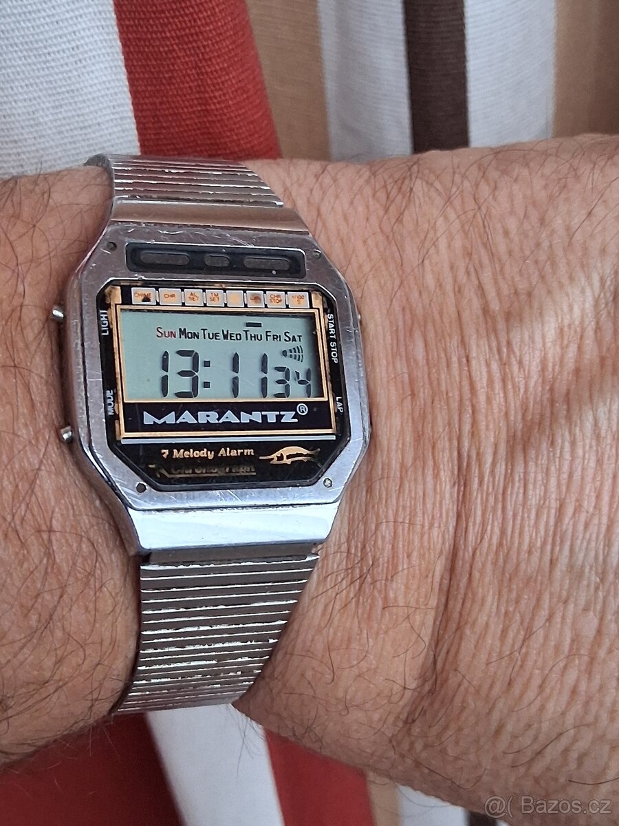 Prodám staré 80-90 léta pánské digitální hodinky MARANTZ. 7 Melodie. Jsou funkční, jedině nesvítí svitilko. Stav viz.foto. Osobně převzetí Praha 4,nebo přes zasilkovnu