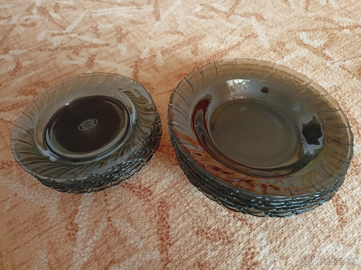 z kouřového skla vhodného do mikrovlnné trouby, minimálně používané. Rozměry viz fotky. Případně otázky ráda zodpovím.