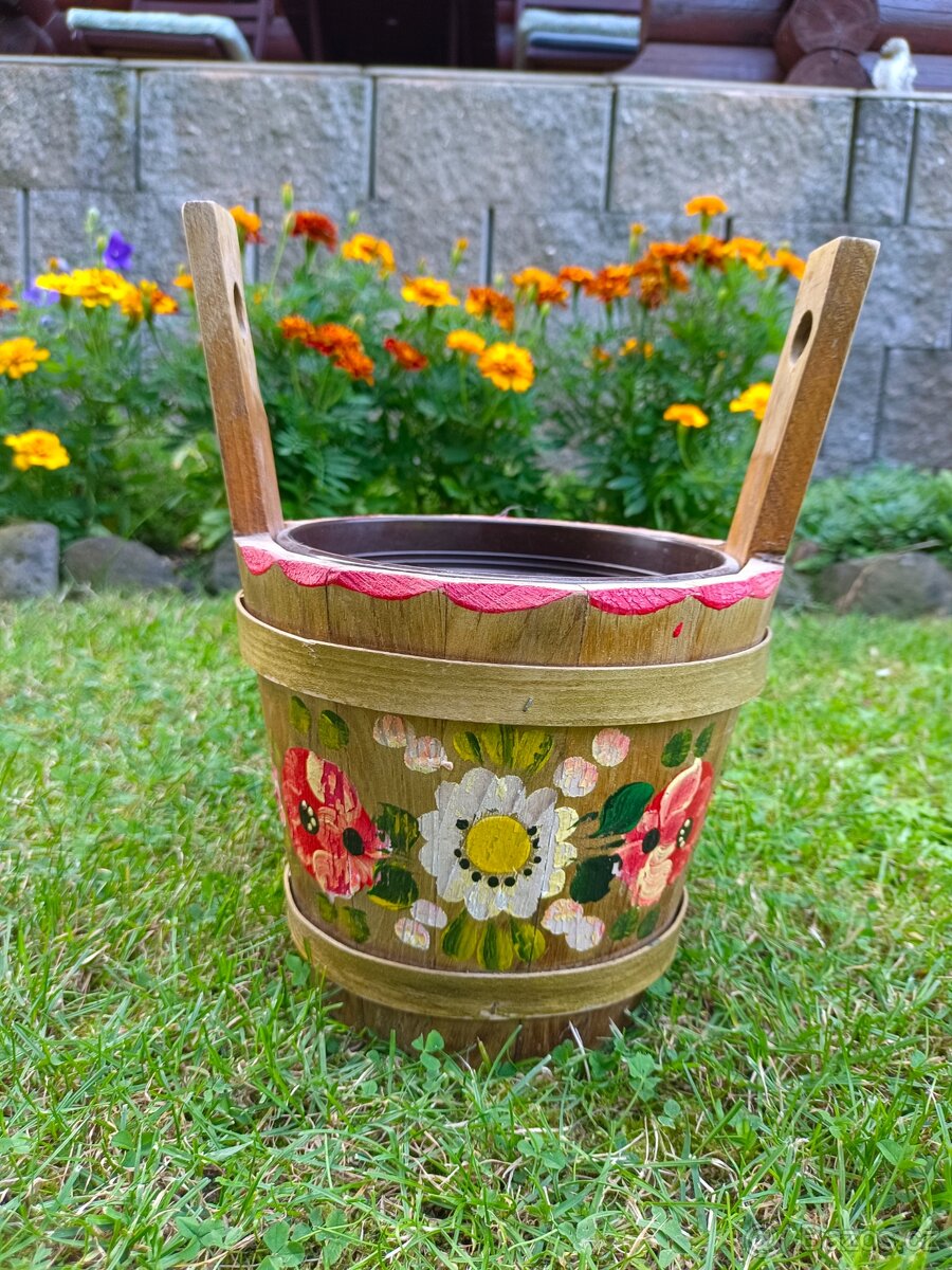 Starší malovaná nádoba/květináč, výška 18 cm, horní průměr 20 cm, stav viz foto.