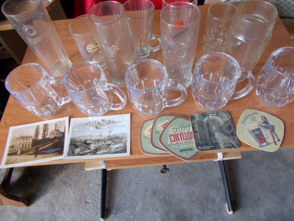 Pivní půllitry, sklenice a tácky