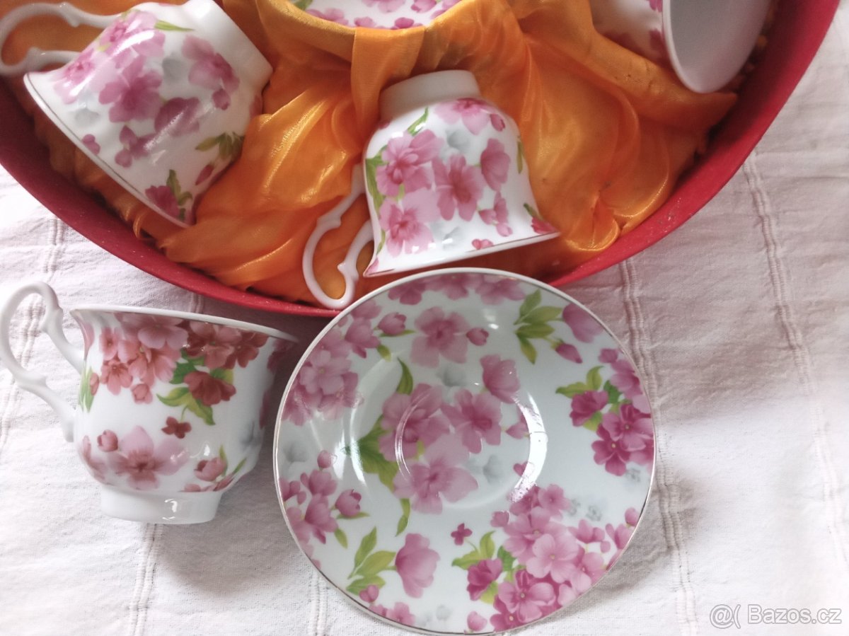 Nabízím k prodeji 2 sady šálků a podšálků, možno i jednotlivě Kč 150/l sd. Květinový vzor nebo bílé se zlatým proužkem. A 2ks šálků a podšálků zelený porcelán se zlatem Pouze osobní odběr na tel. 728071559 skleničky Kč 10/ks