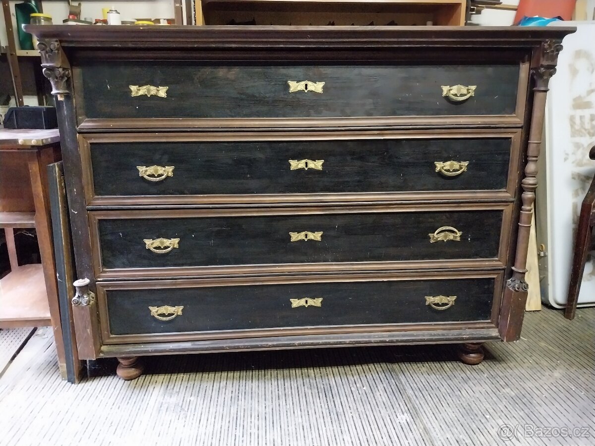 Starší dřevěná komoda se 4mi šuflaty, na nožkách