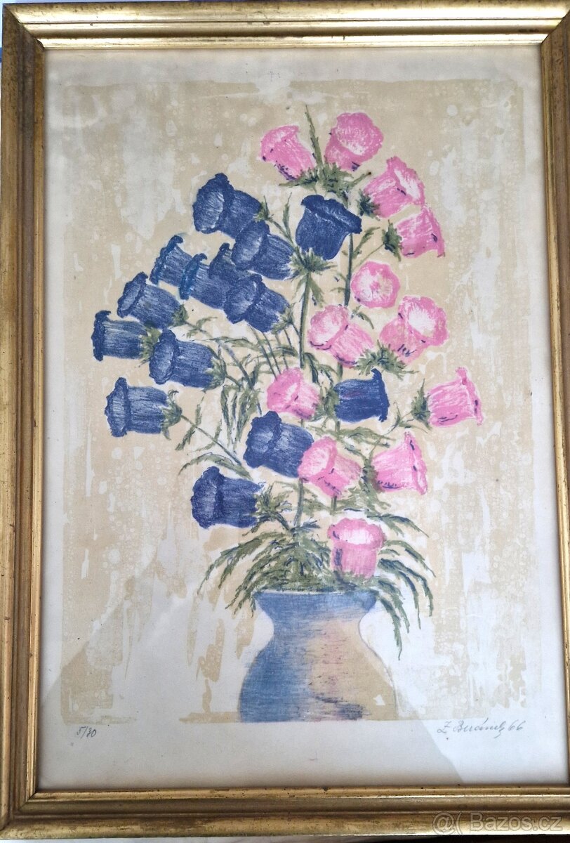 Prodám obraz "Zvonky", signováno PD (Z. Beránek - žák M. Švabinského), barevná litografie (5/30), rozměr 39 x 34 cm, rok 1966, rám, sklo, dobrý stav. Předání osobně nebo zaslání poštou. Nezasílám na dobírku.