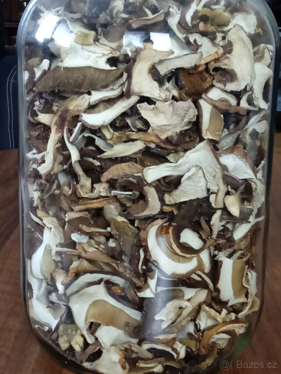 Sušené houby - [29.1. 2026]Prodám sušené houby z loňského roku, směs hřibovitých hub z Pošumaví a Šumavy, houby jsou v uzavíratelný sklenicích o objemu 3 až 3,5 l viz foto.