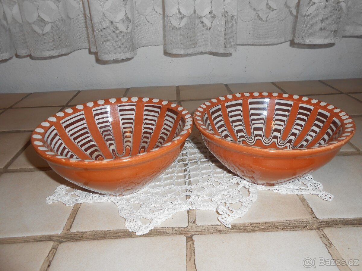 Prodám dvě malované keramické misky, š. 15 cm, v. 7,5 cm.
