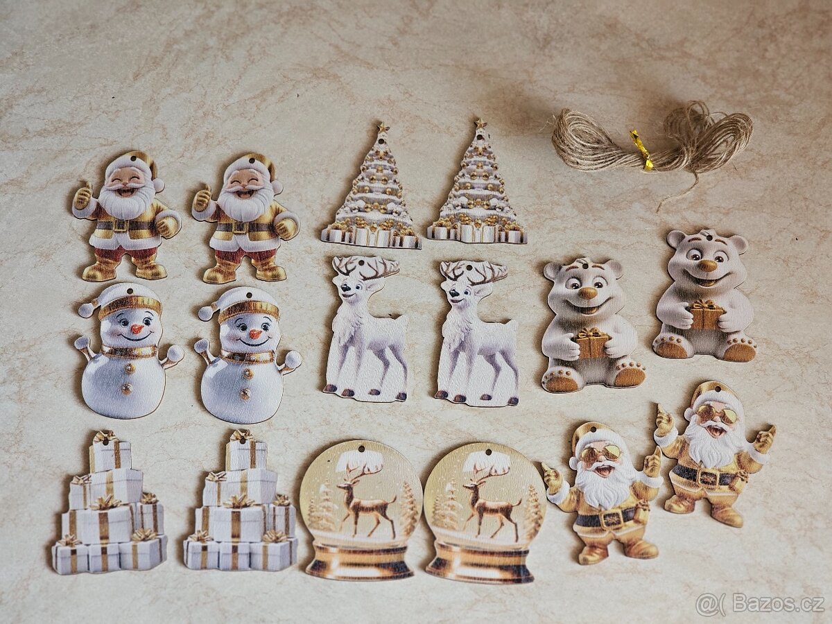 16 kusů vánočních dřevěných ozdob