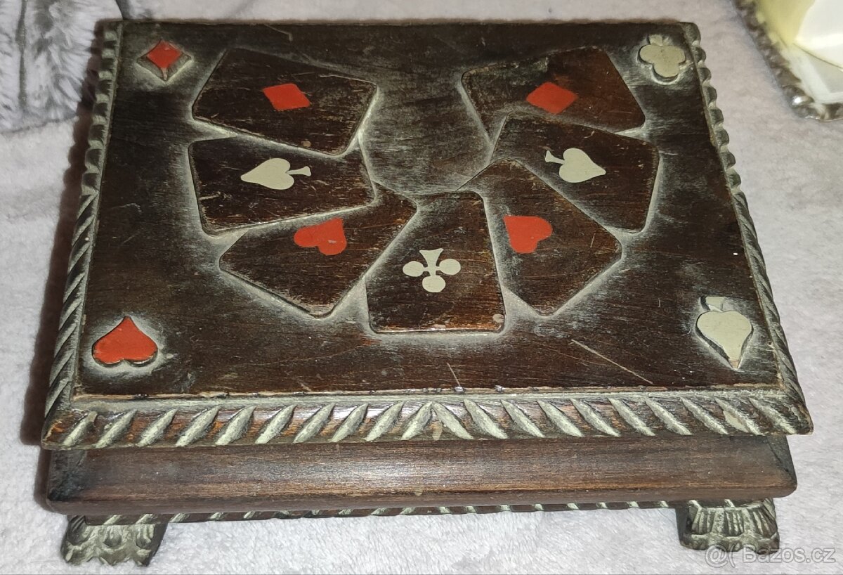 Prodám krásnou starou vyřezávanou dřevěnou krabičku na karty.
