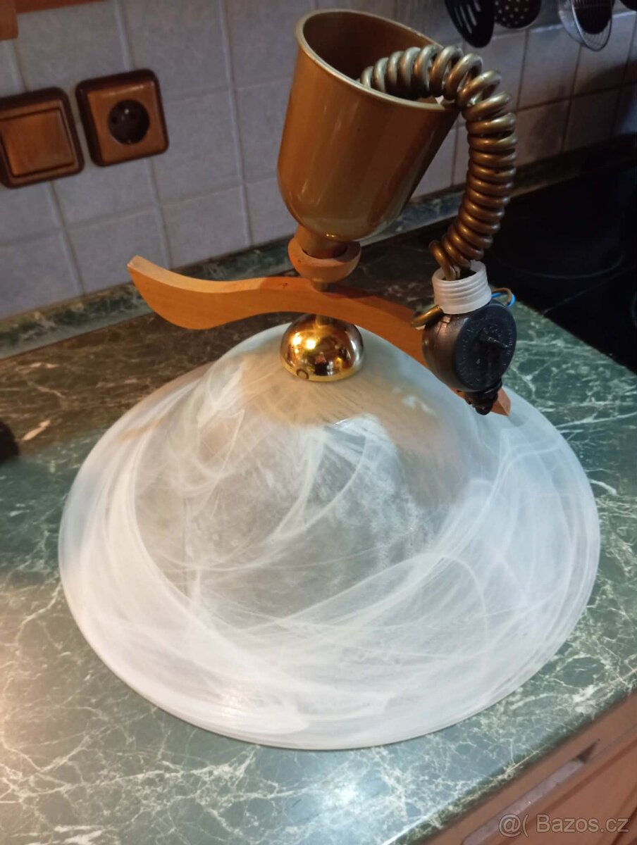 Prodám skleněný závěsný lustr, stav výborný, průměr 42cm, nastavitelný kabel.