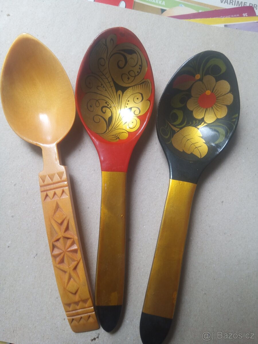 Prodám staré dřevěné dekorativní lžíce celkem 3 ks