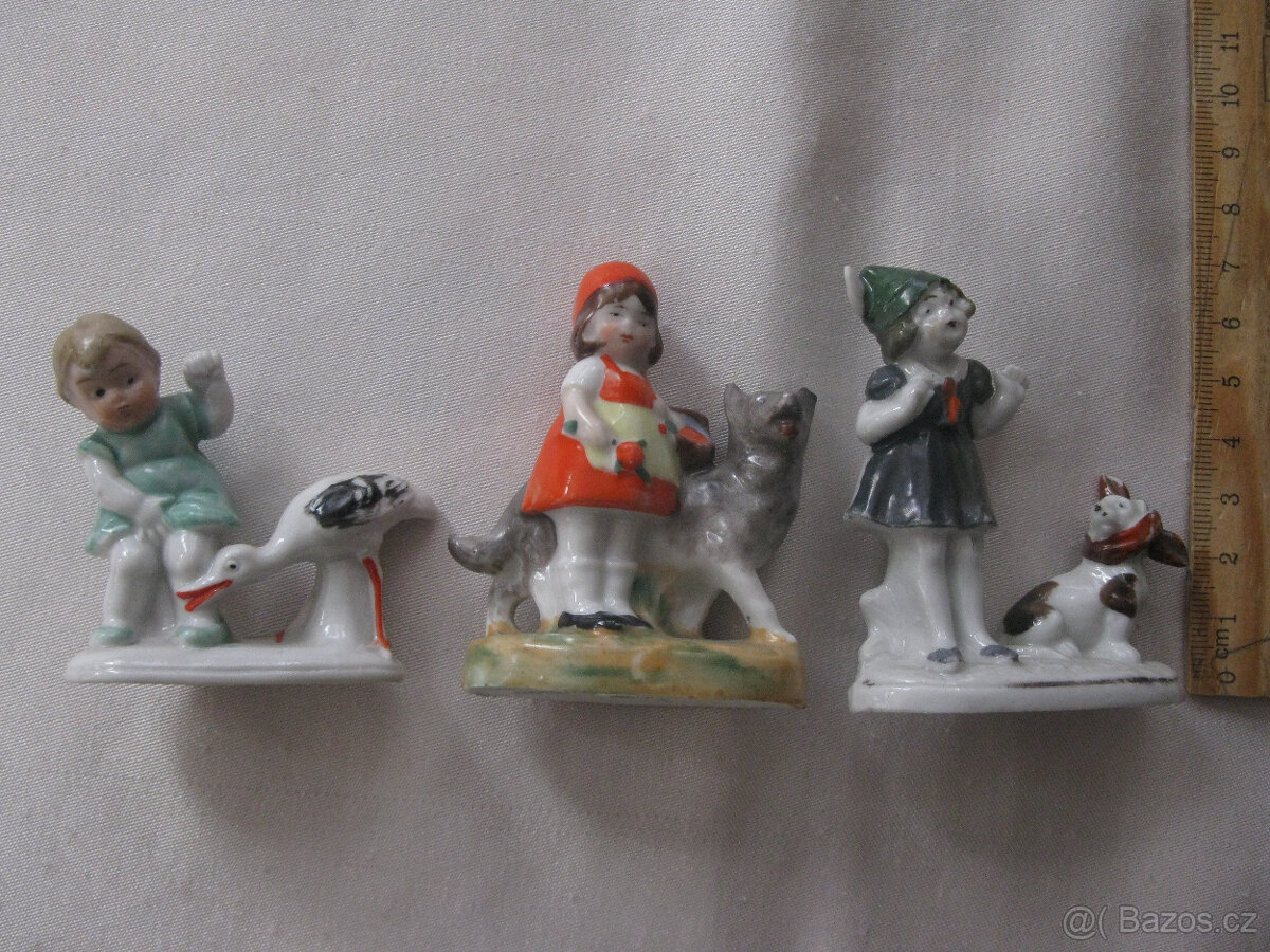Nabízím staré roztomilé sošky,karkulka,holčička s pejskem,holčička s čápem.1000 Kč/ks.Jsou po prababičce ze Slovenska,ale původ možná je z Maďarska,podle vykládání.Určitě aspoň 100 let staré.Sběratel se v tom určitě lépe vyzná.Nepoškozené ! Starožitný popelník,velmi pěkný,v zachovalém stavu za 2 555,-Kč.Velmi stará, krásná, mísa 1 555,-Kč ,podlouhlá kovová míska na všechno,na ovoce,cukroví,i na vánoční,velikovoční dekorace,za 555,-Kč. Sošky po 1555,Kč./ks.menší s menší prasklinou 999,Kč