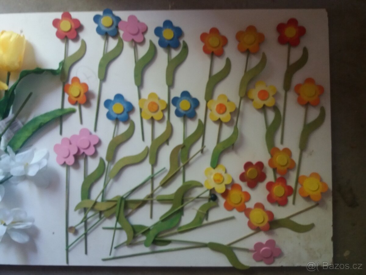 1. dřevěné kytky různobarevné se stonkem a lístkem, je možné různě přemalovat, cena za jednu 15,-- /celek 250,--/