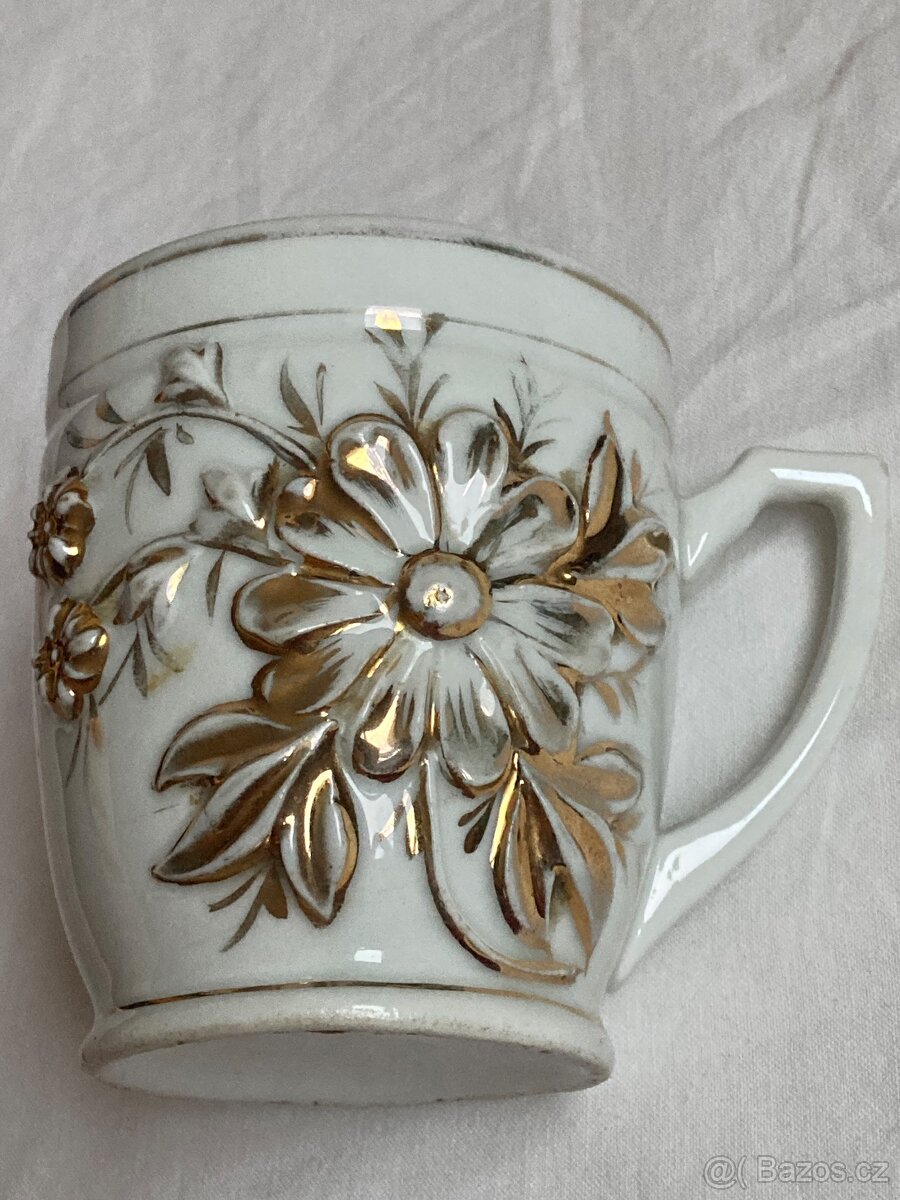 Prodám starý hrnecek s plastickym vzorem, výška 9cm průměr 7,5cm. Bez otuku, stav odpovídá staří . Cena 350+ 100 doprava