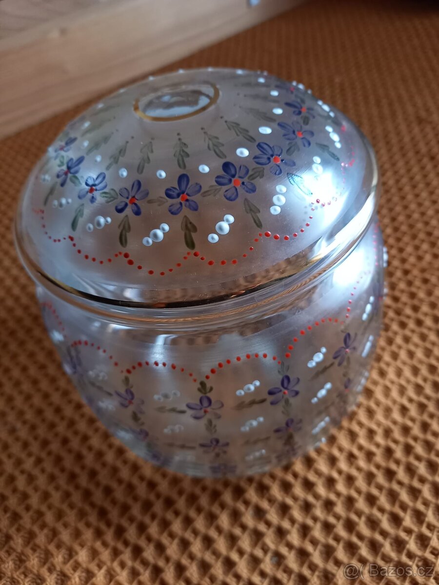 Malovaný skleňený zásobník,krásný, Plzeň, tel.776155648