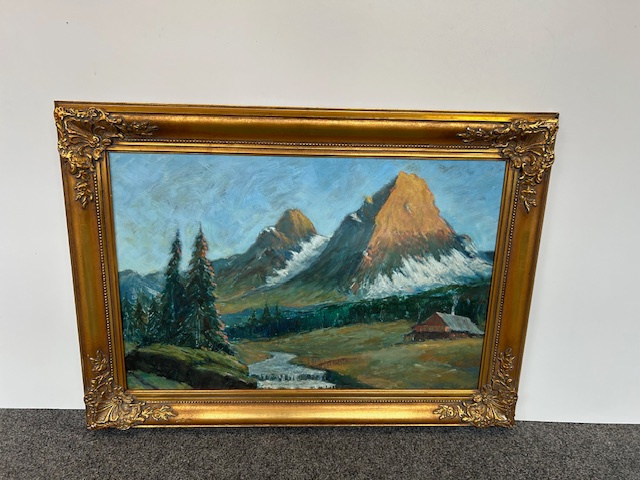 Krajina na sololitu v hezkém zdobeném rámu, vše viz. foto. Celková velikost 87 x 63 cm, více info. na 773 258 444.