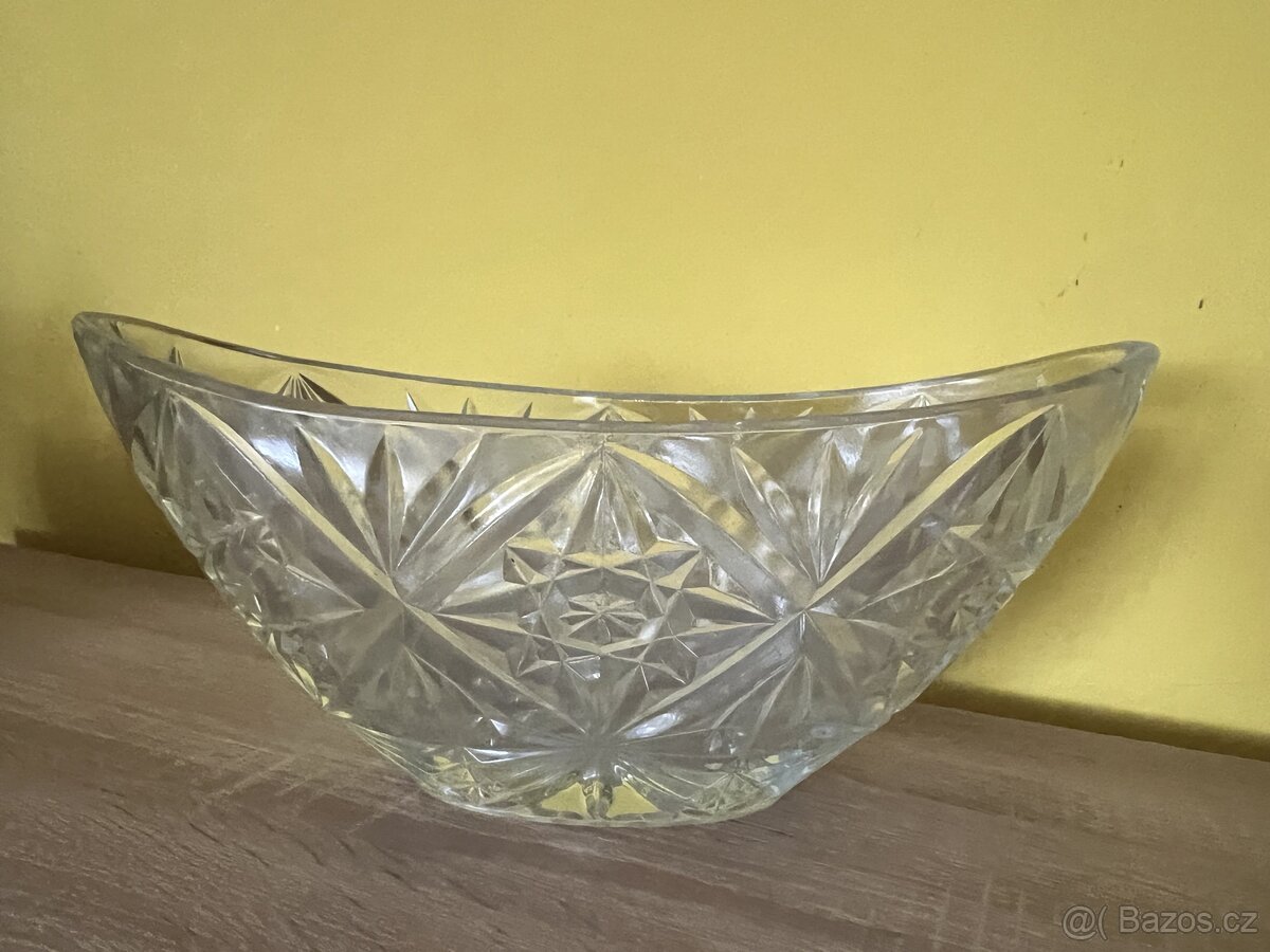 retro, sklenena misa na ovoce, broušená, 32x15x13, velice zachovala, jako nova