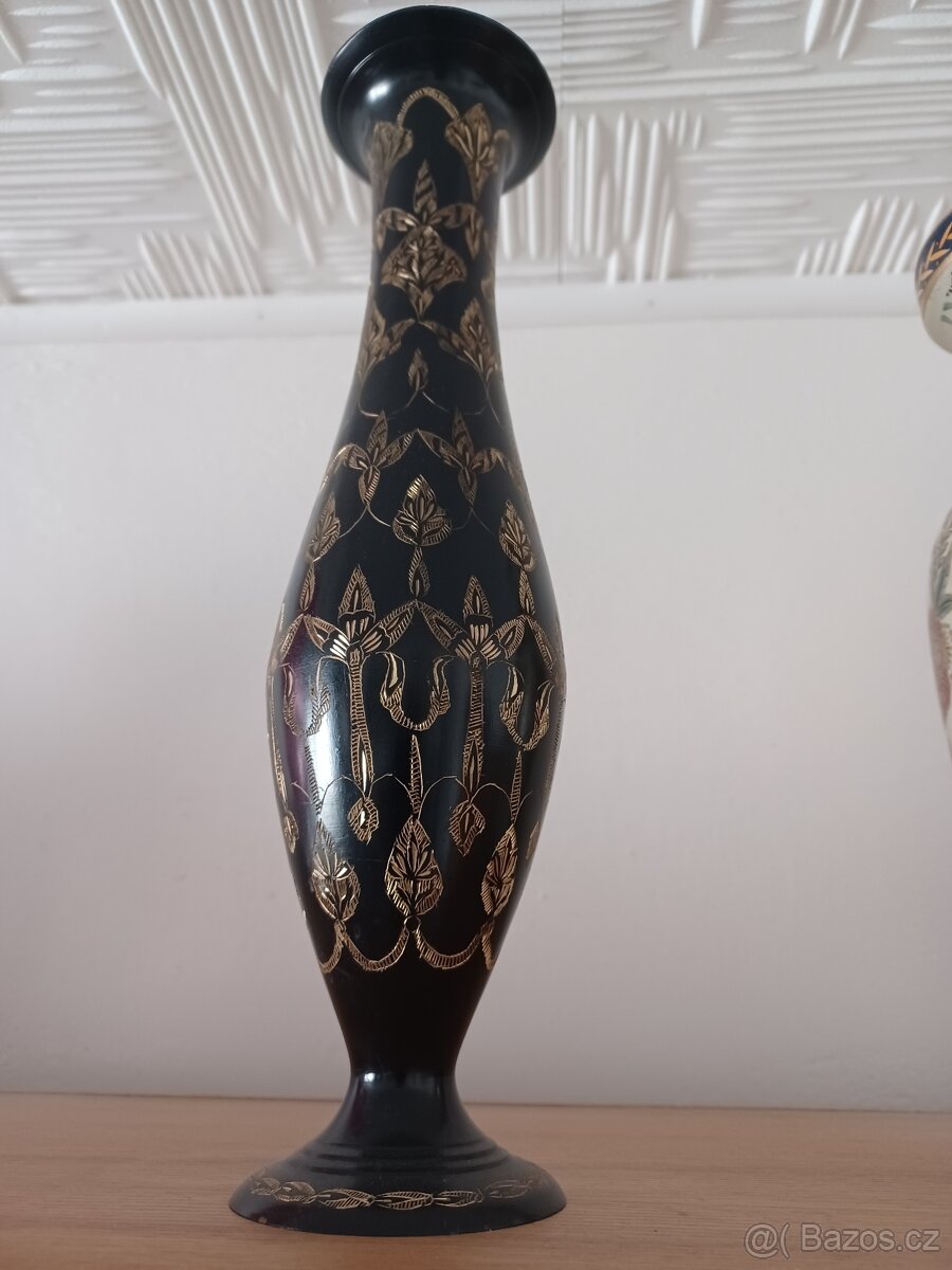 Starožitná váza zdobená rytými zlatými vzory.60-70.léta