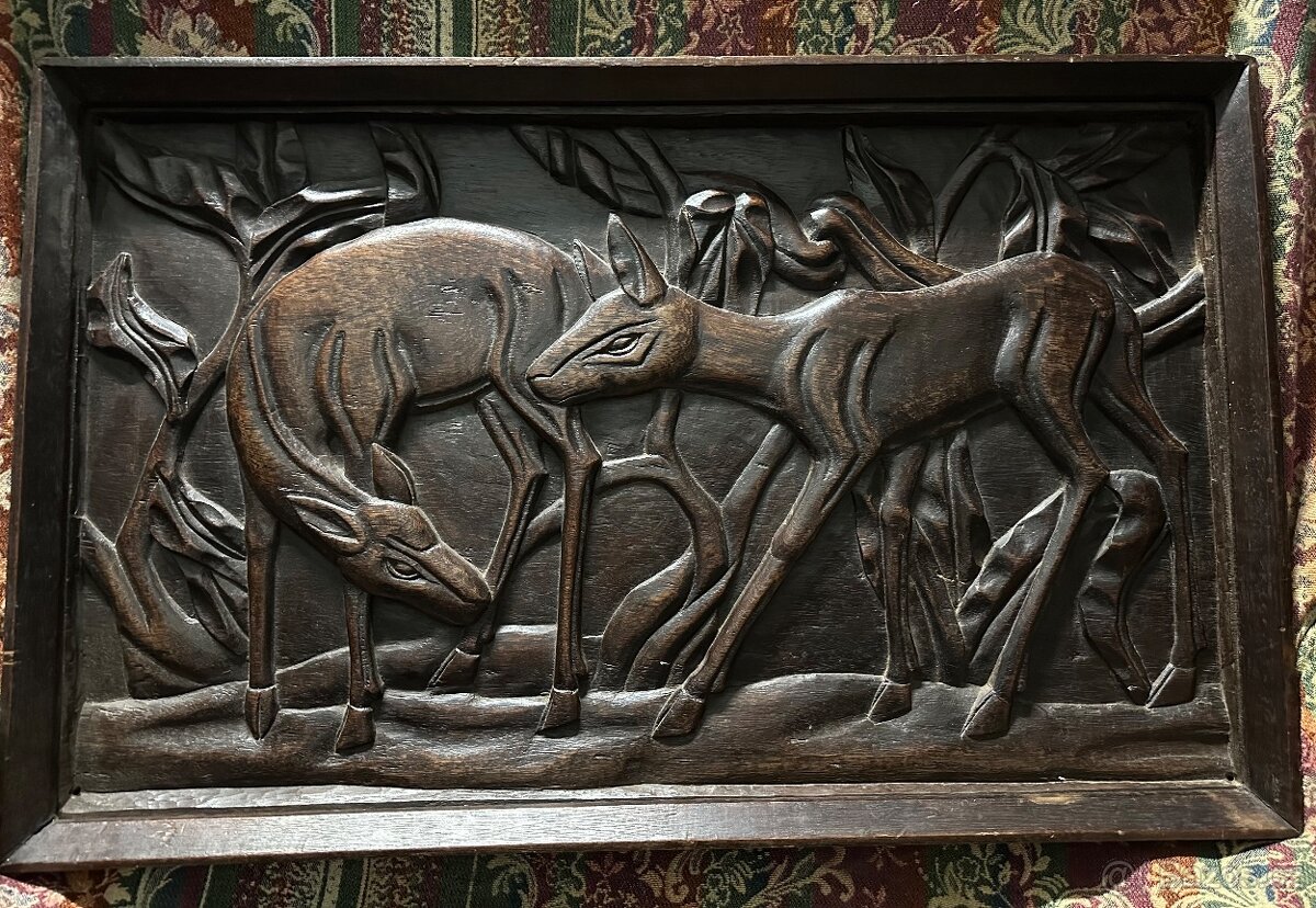Obraz - dřevořezba s motivem antilop. Rozměry 82x51cm Info telefonicky 703395186