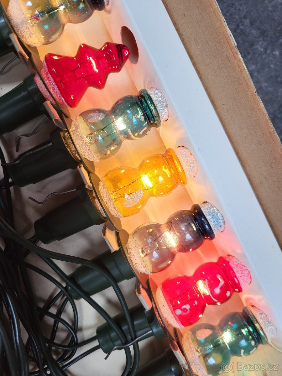 Prodám retro vánoční osvětlení od firmy HELIAND (pokračovatel firmy zlatokov) typ SNĚHULÁK v originálním obalu, upraveno vypínačem, pěkný funkční stav viz foto.