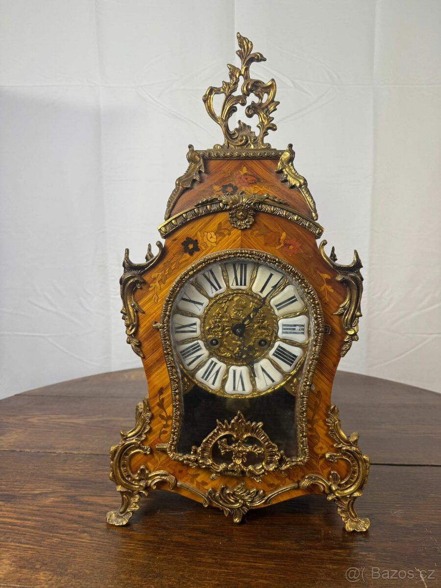 Starožitné švýcarské hodiny "Boulle" - [18.2. 2026]Starožitné švýcarské krbové dřevěné hodiny Zenith.