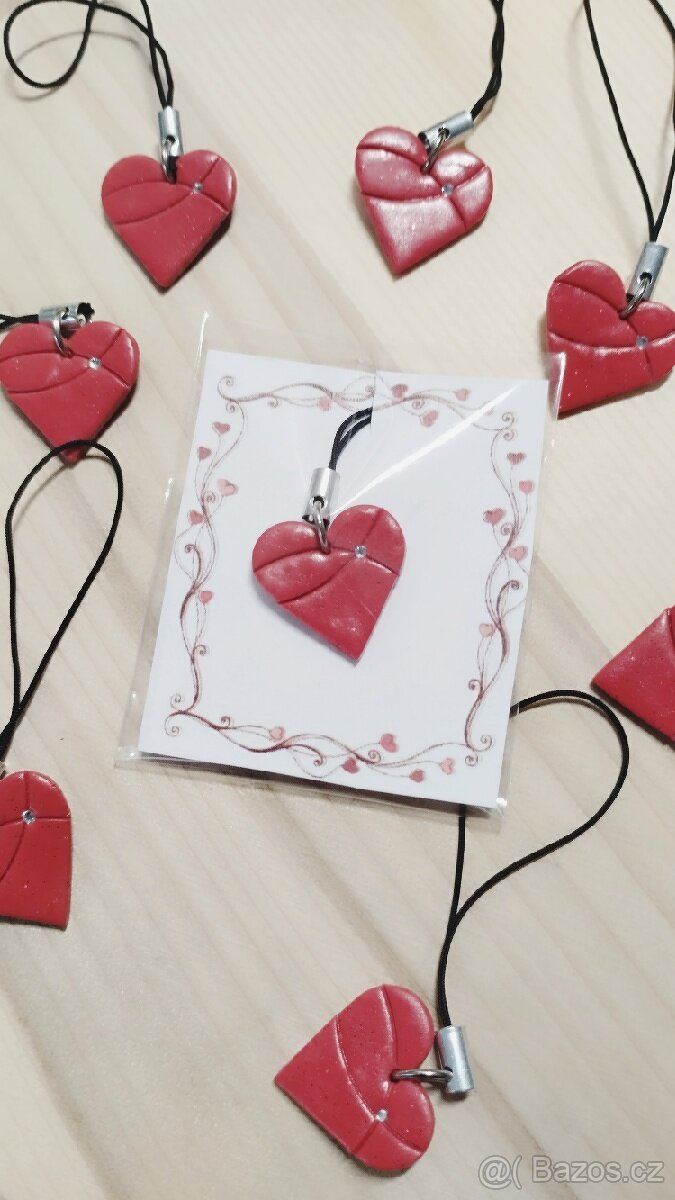 srdíčko je cca 2 cm velké - vyrobeno z polymerové hmoty je zavěšené na mobilní šňůrce : ozdoba na klíče, batoh, kabelku jako milý dáreček.