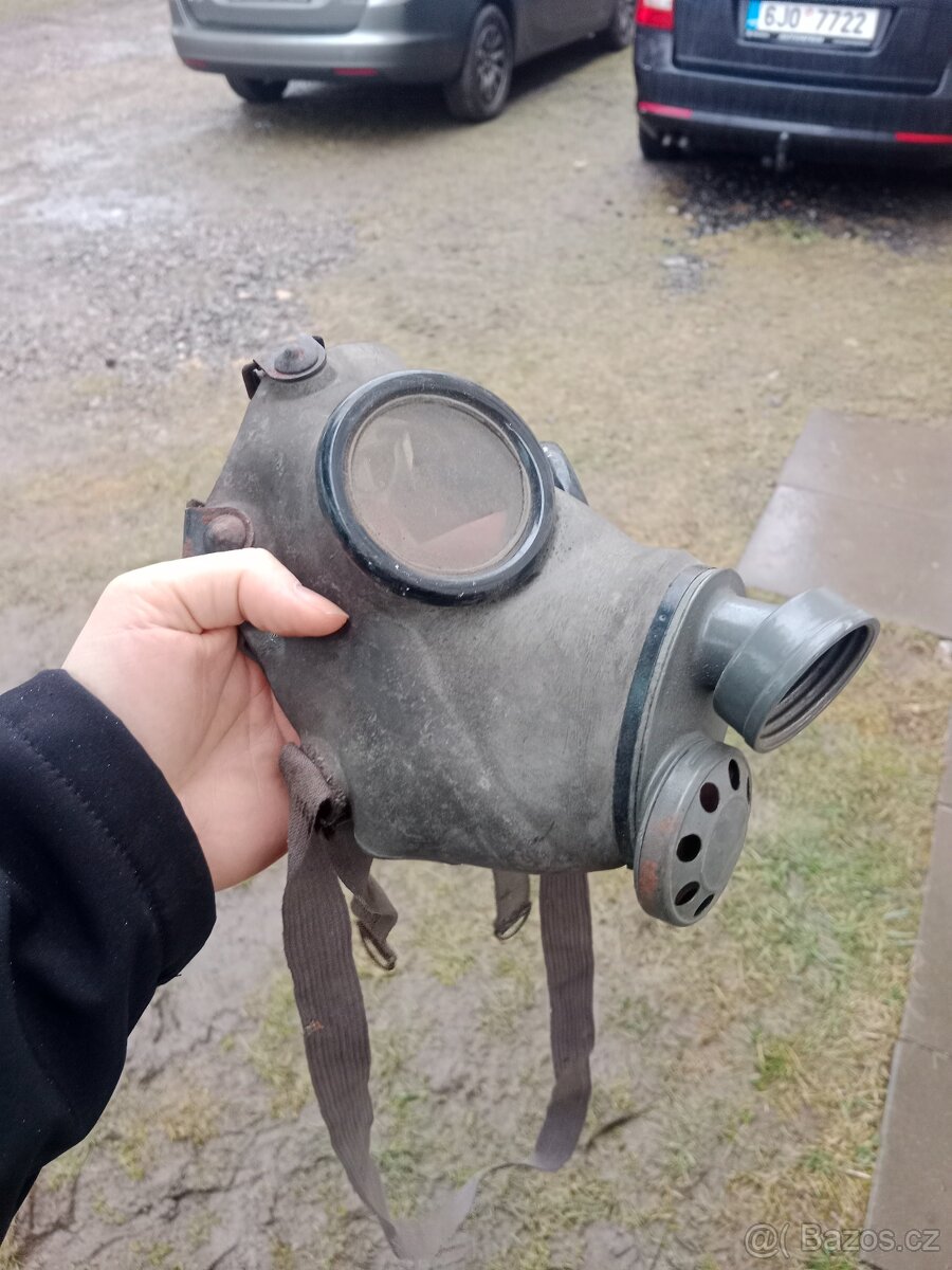 Plynová maska Fatra FM-1a. Cena 300 Kč.