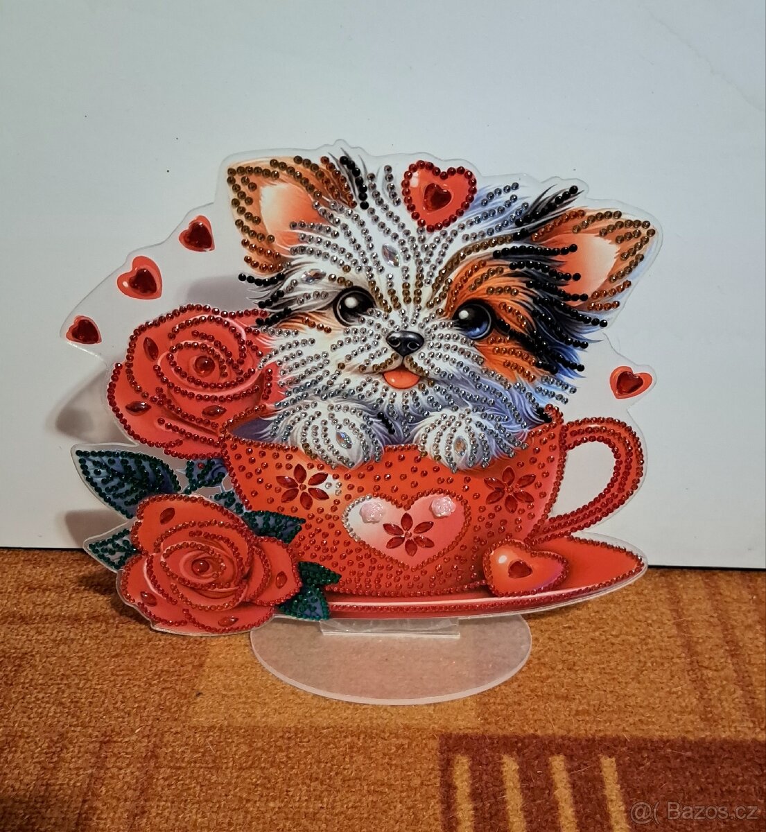 Nabízím sladkou dekoraci na stůl, štěňátko v hrnku s uchvatnym pohledem.