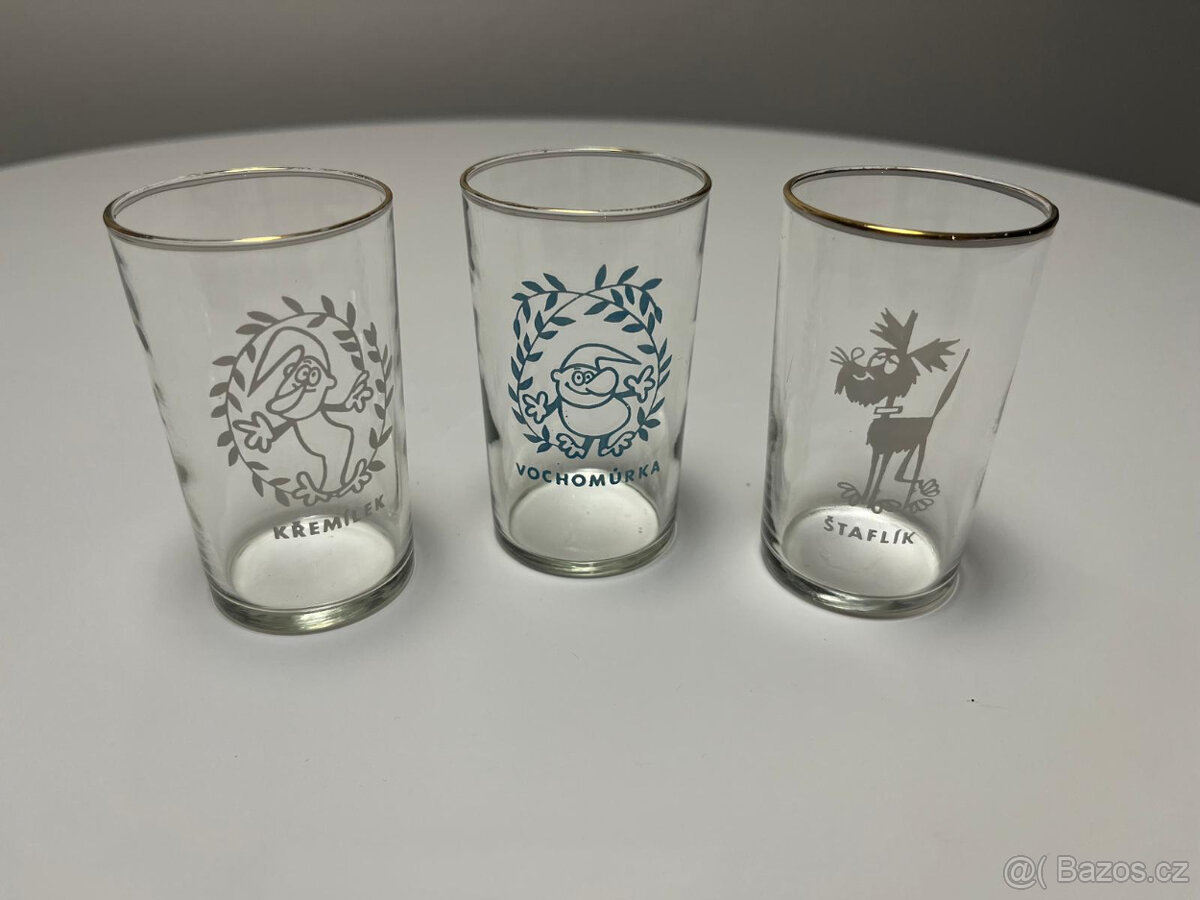 Nabízím 3 retro skleničky s pohádkovými motivy Křemílek, Vochomůrka a Štaflík. Každá sklenička 60 Kč. Všechny tři 150 Kč. Při platbe předem vč.dopravného zašlu do boxu Zásilkovny nebo PPL.