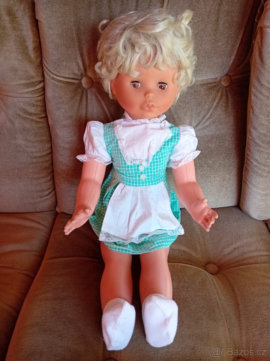 Prodám starou chodící panenku, výška 62cm, cena 350 Kč.