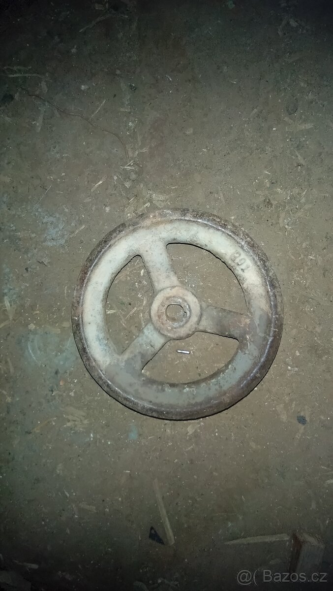 Nabízím litinové kolo/madlo/rukojeť. Mělo by být z aretačních noh váhy na dobytek, ale lze samozřejmě využít jakýmkoliv jiným způsobem. Na ovládání šroubovice, ventilu, kohoutu,...apod. Průměr otvoru viz. foto.