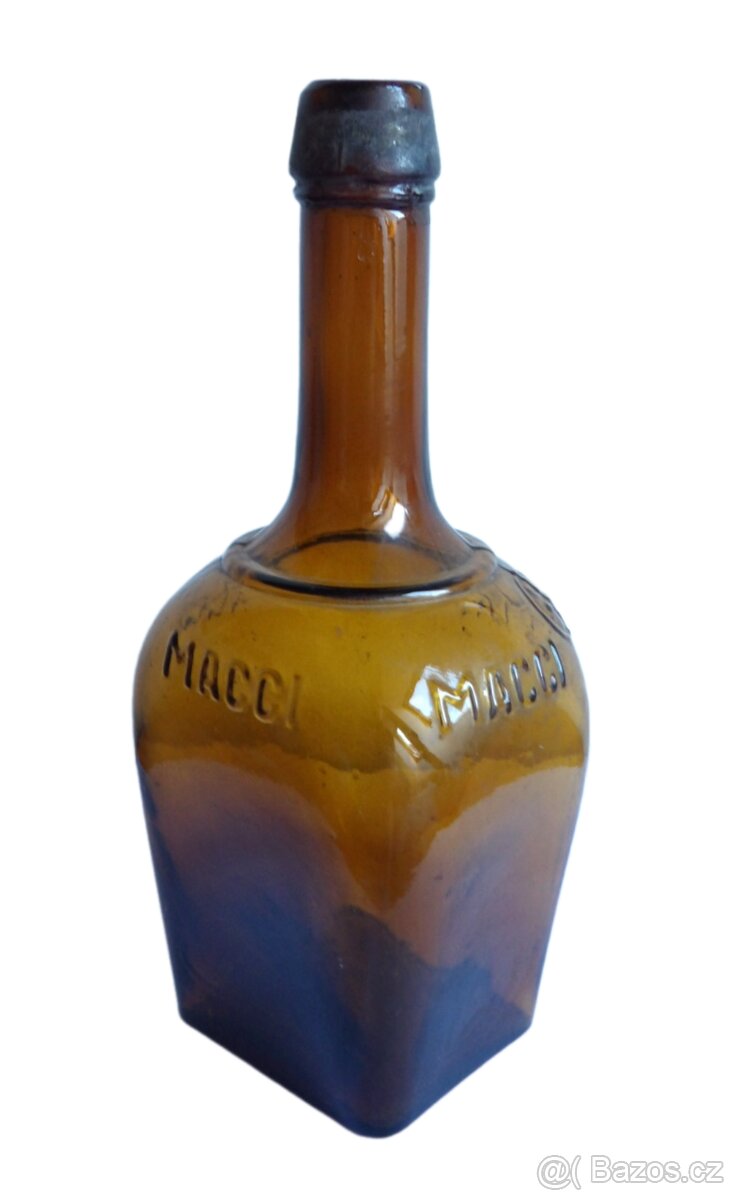 Stará láhev číslo 5 od polévkového koření s litými nápisy a křížovou hvězdou, výrobce Julius Maggi a spol. - Bregenz, výška 27 cm, počátek 20. století, stav viz foto, poštovné od 75,-Kč.