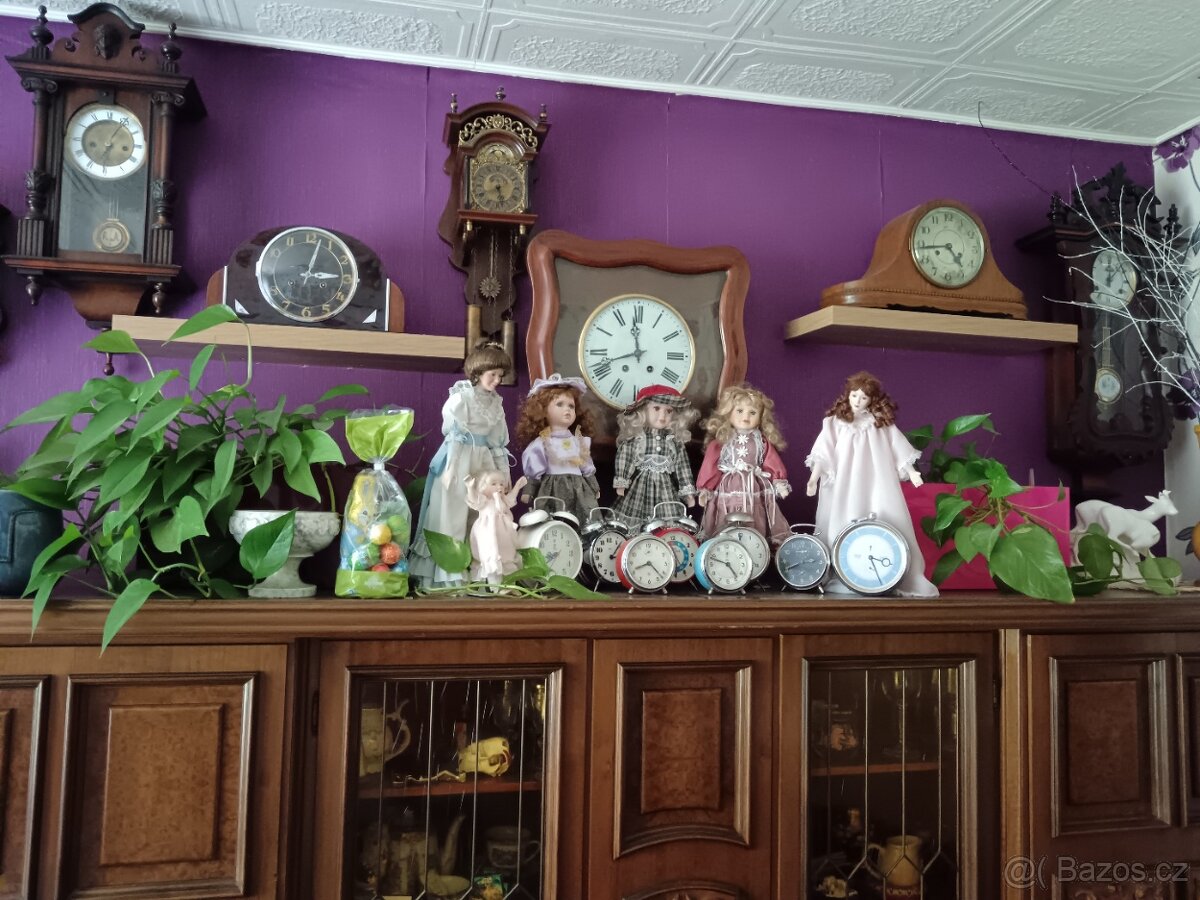 Prodám panenky s porcelánovou hlavou-5.tis.kč. Sbírka budíků-1000kč.