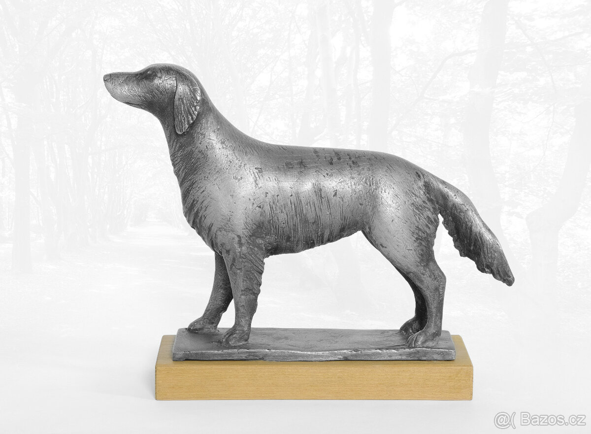 Retrívr, cínová socha psa, dekorace, plastika psa