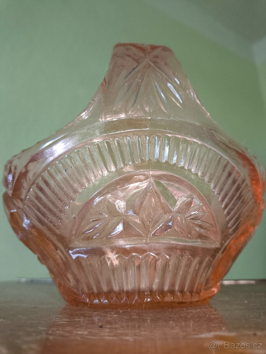 Prodám skleněný růžový košíček (odstín rosalin), lisované sklo. Cena 350 Kč + Zásilkovna nebo osobní vyzvednutí okres Třebíč.