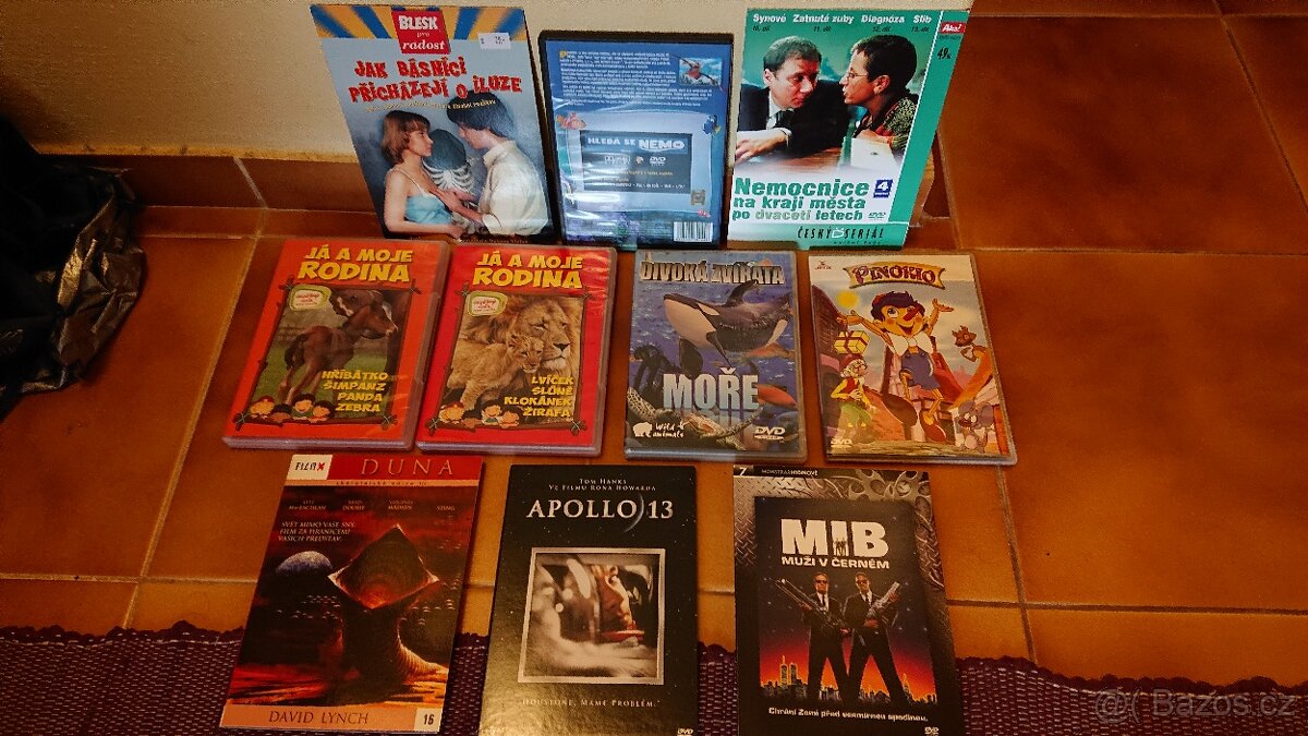 Prodám různá DVD: Apollo 13, Men in black 1, Duna, Pinokio, Hledá se Nemo, Vall-iI, Já a moje rodina, Divoká zvířata, atd. V dobrém stavu Cena je za vsechny dohromady. Vzhledem k ceně upřednostňuji osobní odběr.