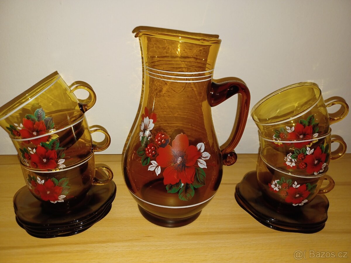 Nabízím k prodeji skleněný džbán a sklenice, nepoškozené. Cena 300 Kč bez poštovného.