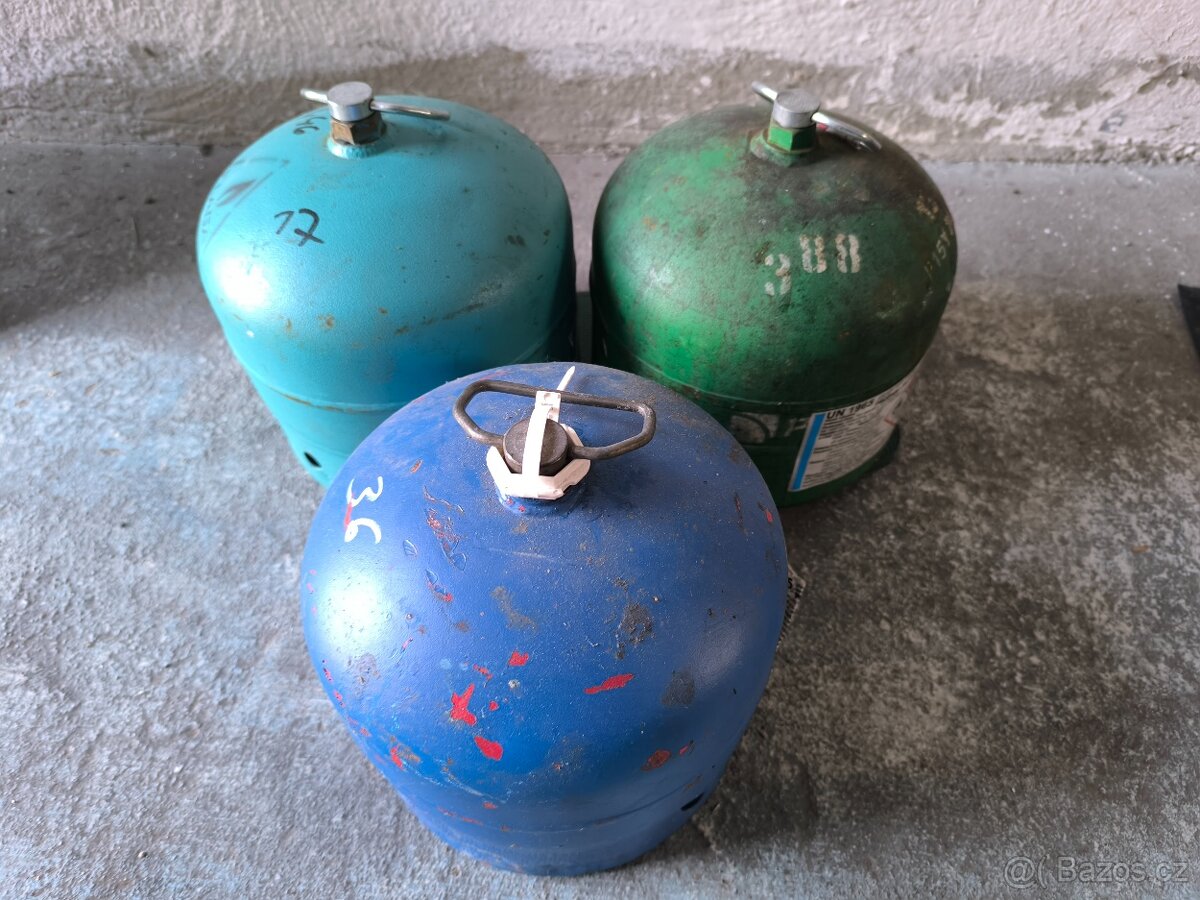 Prodám propanbutanové láhve 2kg s náplní.+ hořáky