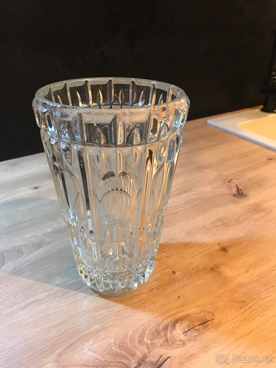 Prodám retro vázu z čirého, lisovaného skla. Heřmanova huť, Sklo union.