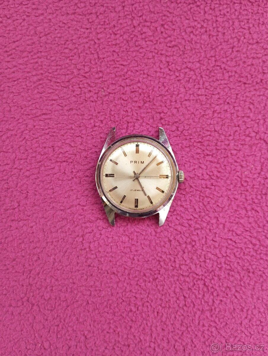 Hodinky Prim - [12.2. 2026]Prodám funkční a seřízené hodinky Prim, 17 kamenů bez řemínku, mechanické
