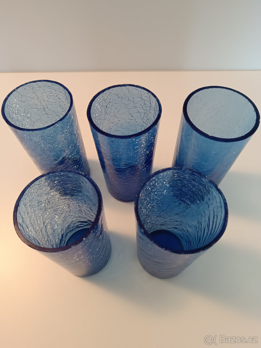 Ručně vyrobené krakelované sklo modré 5 ks (1 mírně naprasklá)