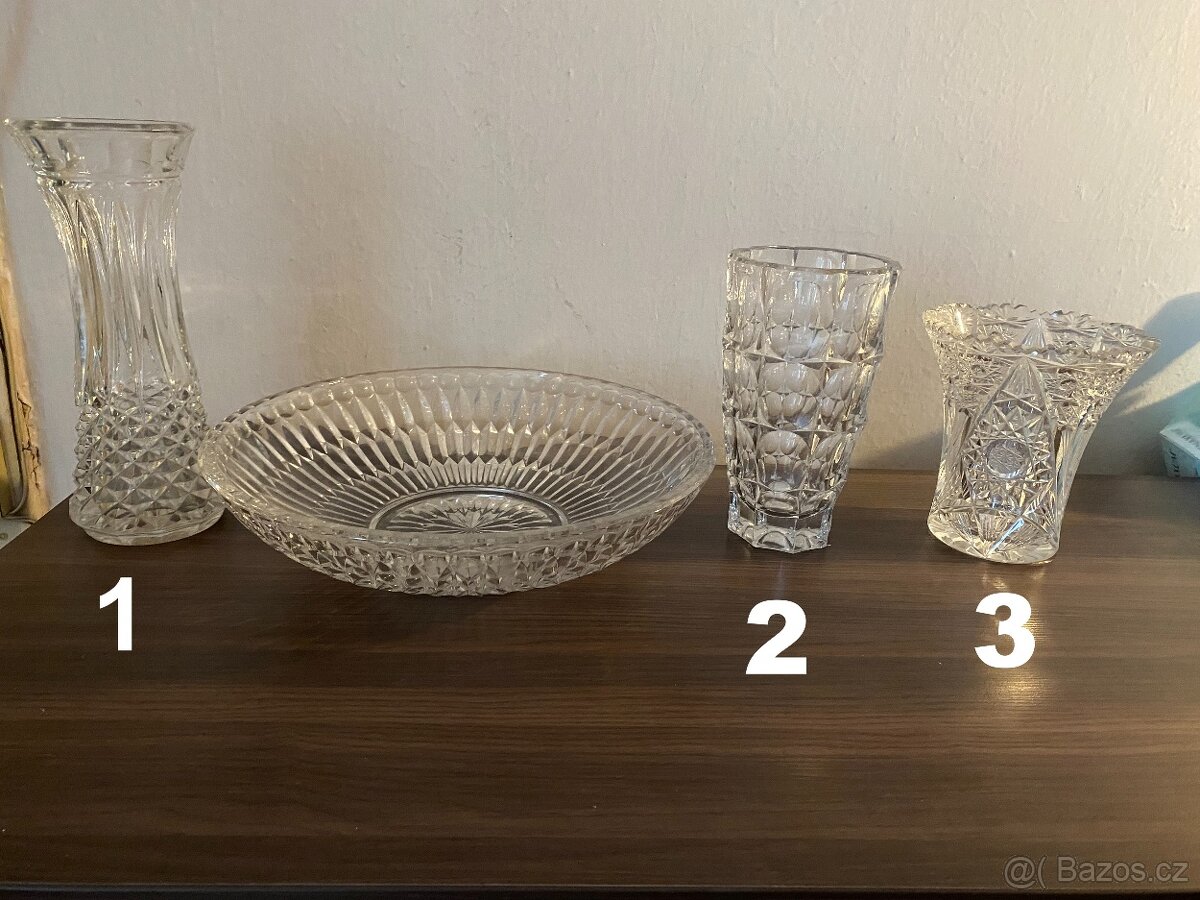 Skleněné vázy v dobrém stavu. Jen zaprášené, jak stály ve vitríně