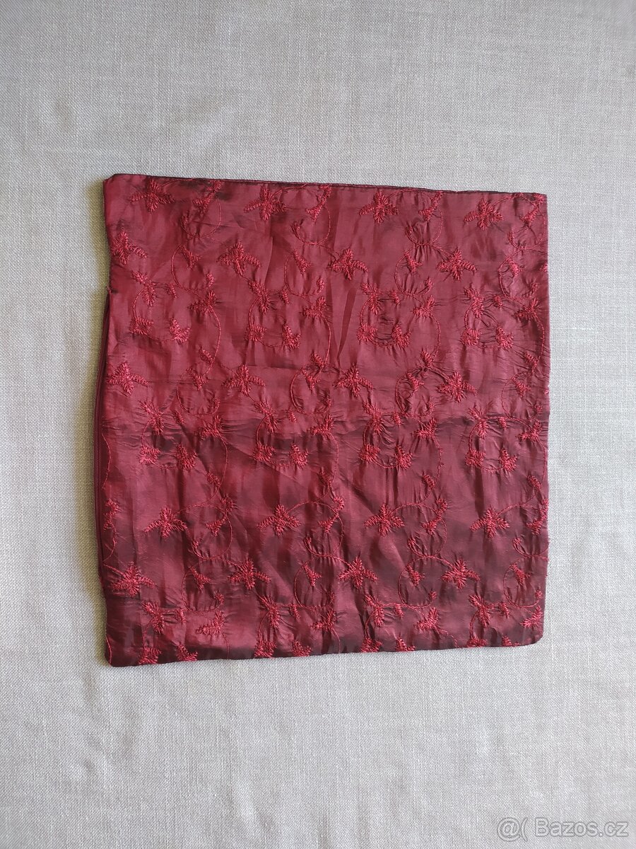 2x vínový viskózový povlak 40 cm x 40 cm, ve spodní části na zip. Kus 40,-