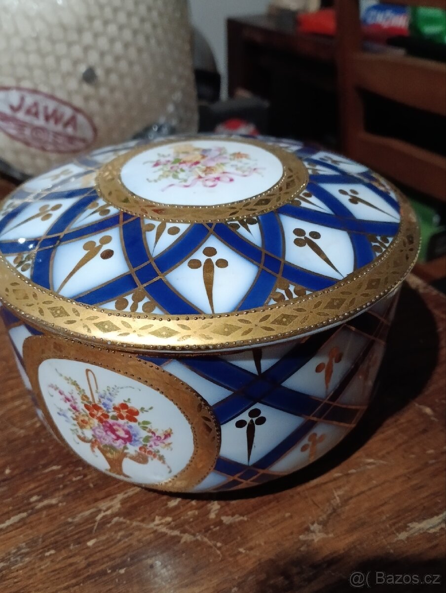 Prodam peknou,znacenou porcelanovou dozu viz foto,germany prumer,16cm,vyska celkem 10cm pekna bez vady cena 500