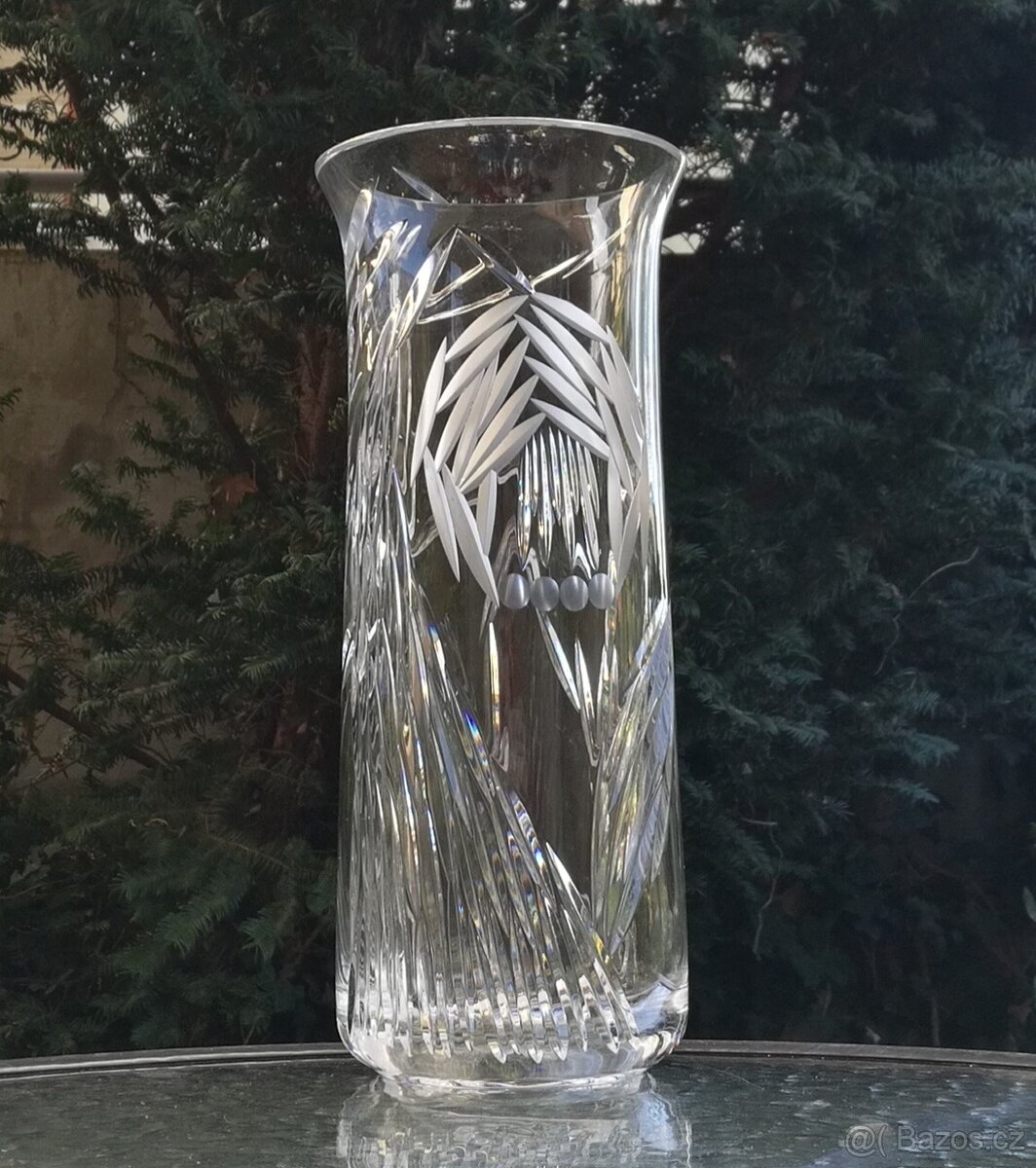 Vysoká, masivní váza s dvěma druhy brusů, pěkný stav, nahoře oťuk viz foto
