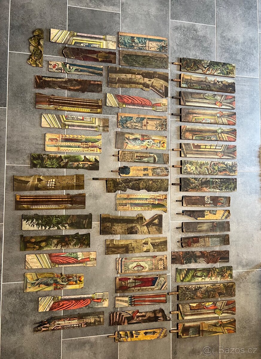 Prodám krásné starožitné papírové loutkové divadlo z přelomu 19.–20. století (cca 1890–1910), původ pravděpodobně Německo / Rakousko.