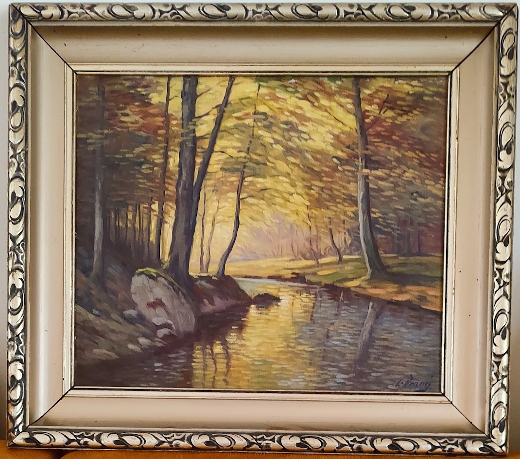 Predám obraz "Lesné zátišie", autor Ladislav Vraný. Olej na plátne, rozmery 40 x 34, s rámom 52 x 46 cm. Možnosť platby aj na účet v ČR.