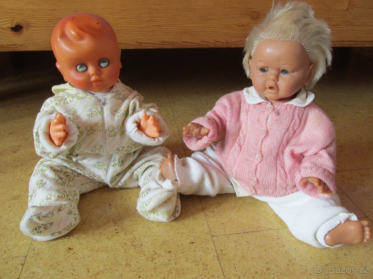 nabízím retro panenky / 70/80 léta, stav úměrně stáří / podle velikosti : dvě velké 50 cm -mrkačky, dvě 28 cm – hnědý bryndák, červená sukně, tři hadrové – modrá 40 cm, žlutá 32 cm, hnědá 16 cm, dvě hadrové mrkací – světlá 32 cm, hnědá 30 cm, dvě : modré šaty – 19 cm, černé šaty 17 cm, malé panenky 10 cm a dvě 7 cm,