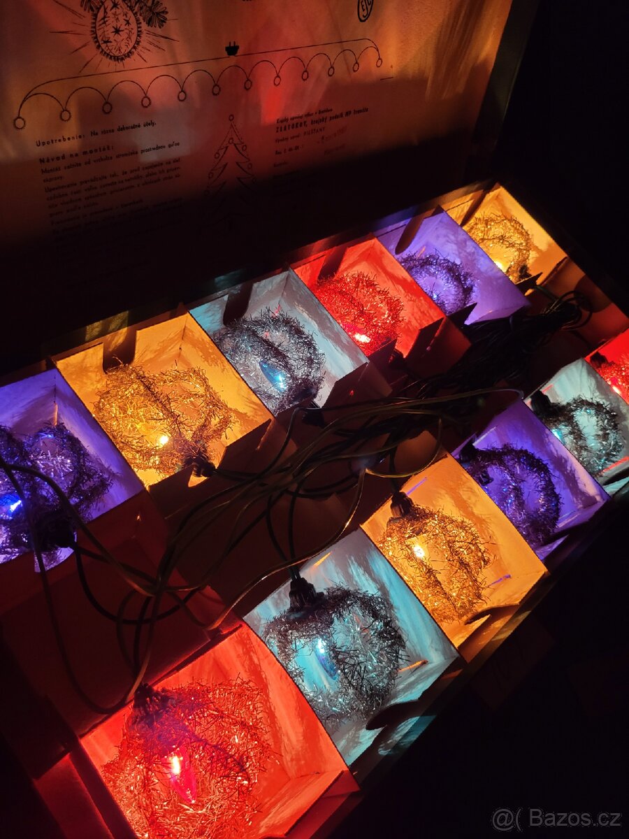 Prodám retro vánoční osvětlení od firmy Zlatokov typ PERLA, z roku 1967, v originálním obalu, pěkný funkční stav viz foto.